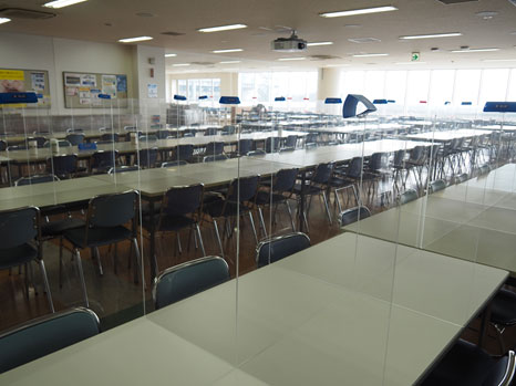 図3 カフェテリアでは一人一人の場所に仕切り板を設けた 出典:Micron Technology